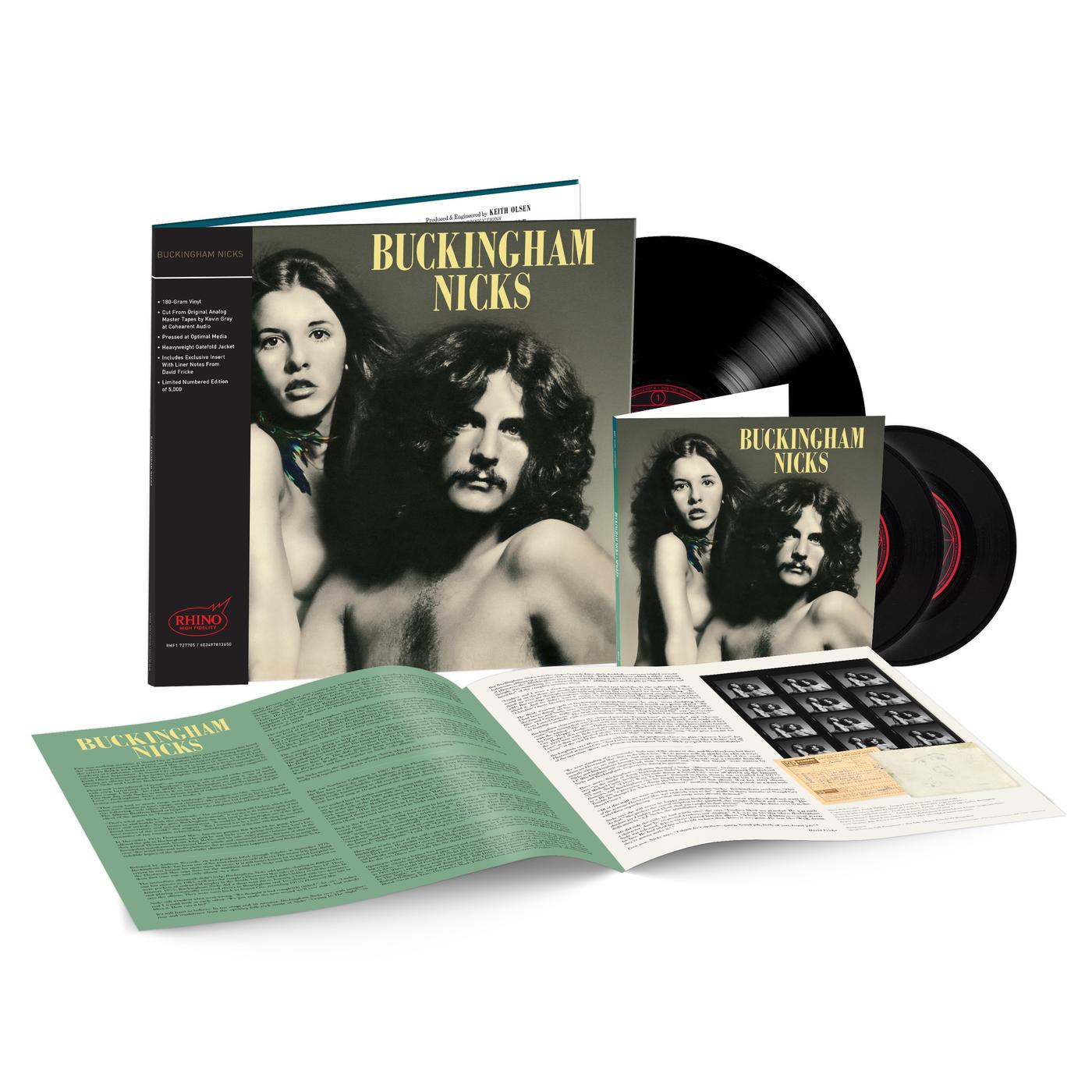 Buckingham Nicks (Rhino High Fidelity) was cut by Kevin Gray from the original masters and pressed on 180-gram vinyl at Optimal. Available exclusively at Rhino.com and internationally at select Warner Music Group stores, the album is limited to 5,000 individually numbered copies. A special version (limited to 2,000 copies) includes two replica 7-inch singles featuring the original single mixes of “Crying In The Night” b/w “Stephanie” and “Don’t Let Me Down Again” b/w “Races Are Run.”